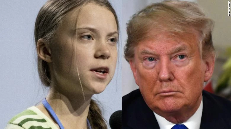 Tổng thống Trump và nhà bảo vệ môi trường 16 tuổi Greta Thunberg. Ảnh: CNN