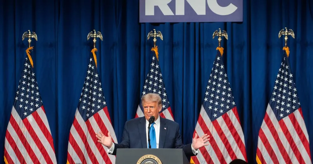 Tổng thống Mỹ Donald Trump phát biểu tại hội nghị toàn quốc đảng Cộng hòa hôm 24-8 tại TP Charlotte (bang Bắc Carolina). Ảnh: CBS NEWS