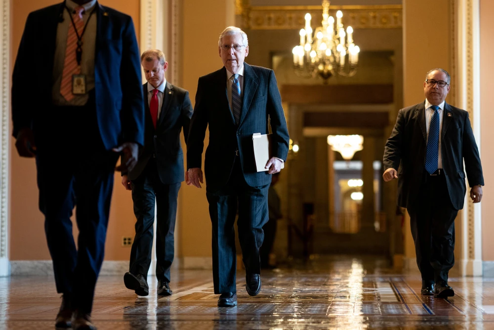Lãnh đạo đa số Thượng viện (do đảng Cộng hòa kiểm soát) Mitch McConnell tại tòa nhà Quốc hội hôm 18-3. Ảnh: THE NEW YORK TIMES