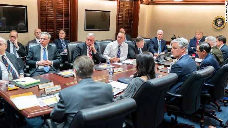 Khoảng 7 giờ 30 tối, ông Esper và Chủ tịch Hội đồng Tham mưu trưởng liên quân, Đại tướng Mark Milley đến họp ở Nhà Trắng - nơi Ngoại trưởng Mỹ Mike Pompeo đã ngồi chờ được ít phút. Một nhóm quan chức cấp cao khác của chính quyền Tổng thống Trump cũng nhanh chóng có mặt ở Phòng Tình huống.