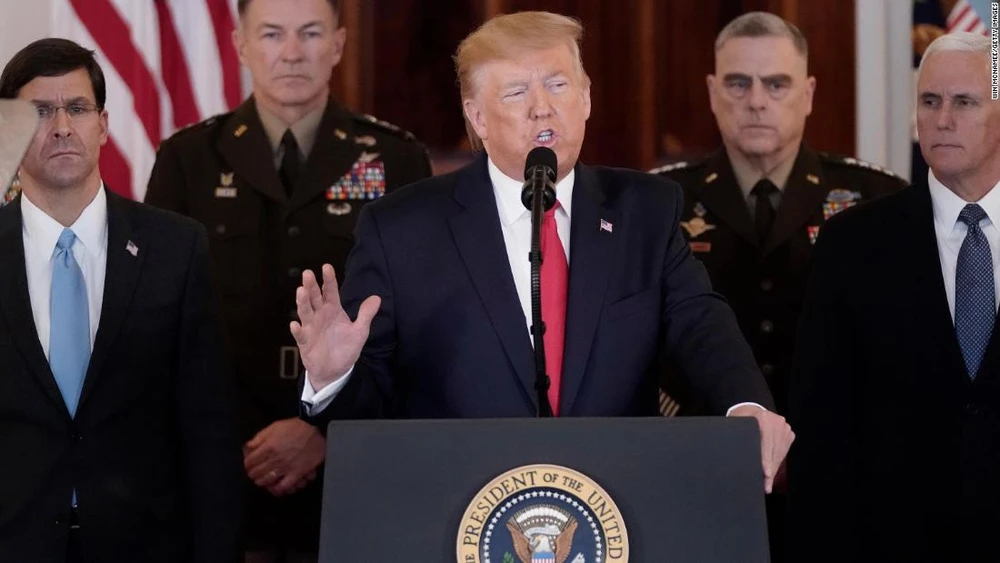 Trưa 8-1 (giờ Mỹ), Tổng thống Mỹ Donald Trump đã có phát biểu chính thức sau vụ tấn công của Iran vào lực lượng Mỹ ở Iraq. Ảnh: CNN