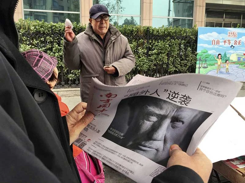 Báo Trung Quốc ngày 10-11 đăng bài ca ngợi ông Trump với tựa đề “Người ngoài cuộc phản công”. Ảnh: AP