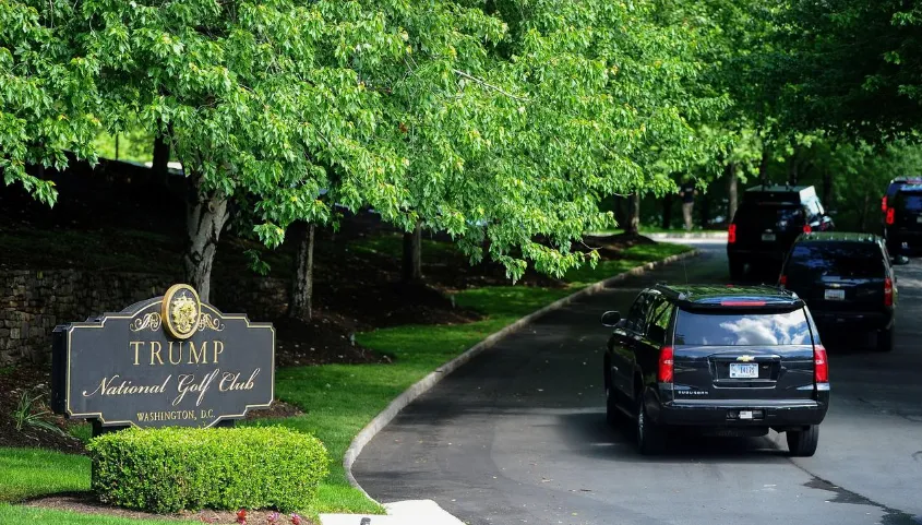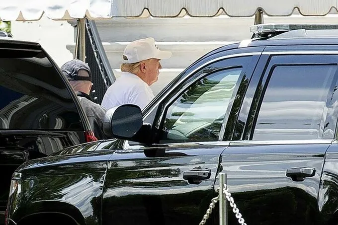 Đoàn xe của ông Trump đưa ông từ Nhà Trắng đến “CLB golf Quốc gia Trump". Tổng thống Trump được nhìn thấy đội mũ lưỡi trai và mặc áo phông trắng.