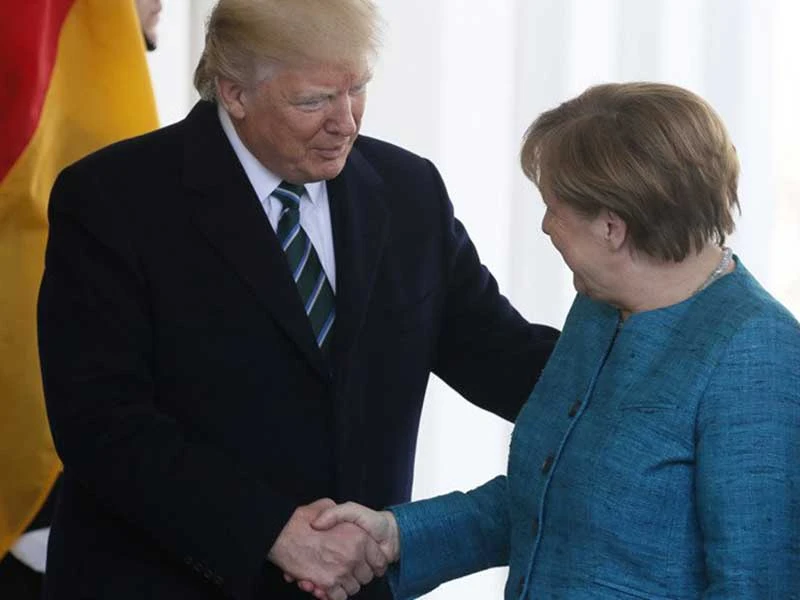 Quan hệ giữa Mỹ và Đức đang gặp một số vướng mắc ngoài vấn đề chi tiêu quốc phòng. Trong ảnh: Là ông Trump và bà Merkel. Ảnh: TWITTER