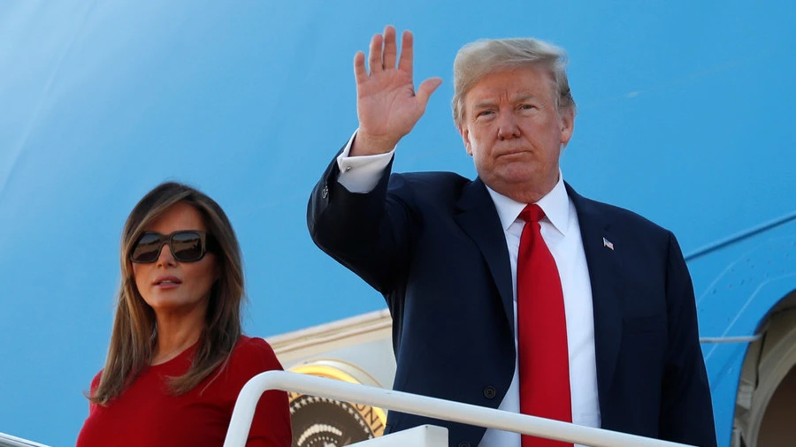 Tổng thống Trump và Đệ nhất phu nhân Melania Trump trên chiếc Không lực một. Ảnh: REUTERS