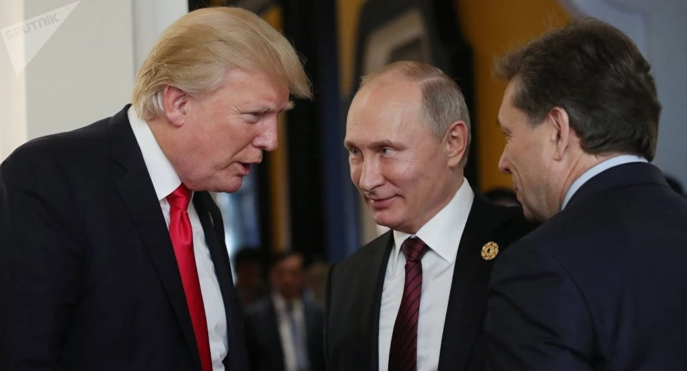 Tổng thống Trump (trái) và người đồng cấp Nga Putin tại APEC 2017. Ảnh: SPUTNIK
