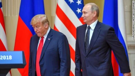 Tổng thống Trump (trái) và người đồng cấp Nga Putin gặp nhau tại Helsinki, Phần Lan ngày 16-7. Ảnh: CNN