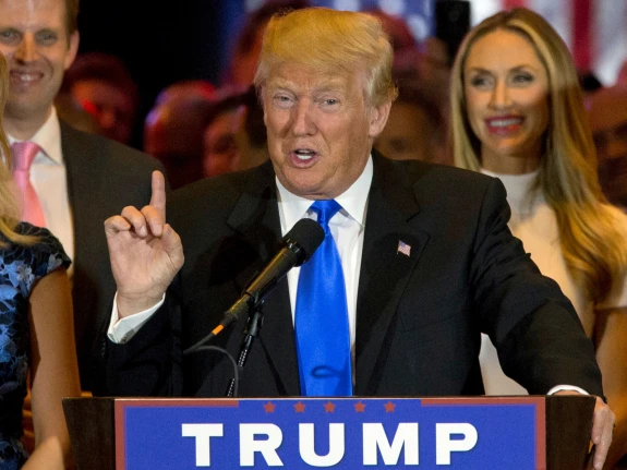 Ông Trump phát biểu mừng chiến thắng tối 3-5 tại New York (Mỹ). (Ảnh: AP)