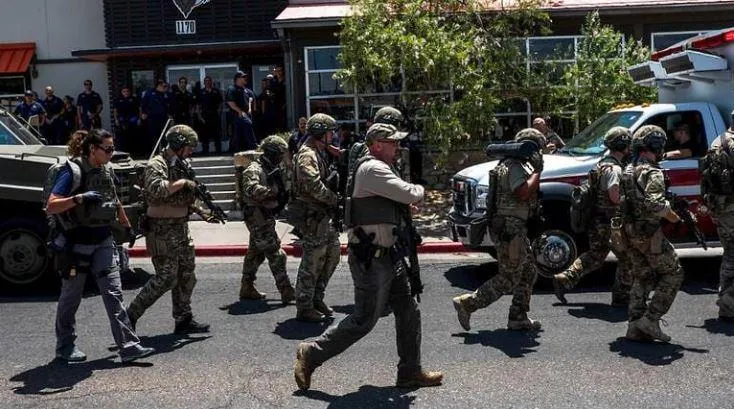 Các cơ quan thực thi pháp luật nhanh chóng có mặt sau vụ xả súng tại Siêu thị Walmart, TP El Paso (bang Texas). Ảnh: AFP