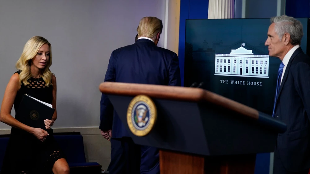 “Tôi phải đi để nhận một cuộc điện thoại khẩn cấp. … Tôi sẽ quay lại. Tôi sẽ gặp mọi người vào ngày mai. Tôi có một cuộc gọi quan trọng, một cuộc gọi thật sự quan trọng” - ông Trump nói sau khi trả lời ngắn gọn về vaccine COVID-19 và nhường bục cho cố vấn về dịch bệnh COVID-19 của Nhà Trắng Scott Atlas.