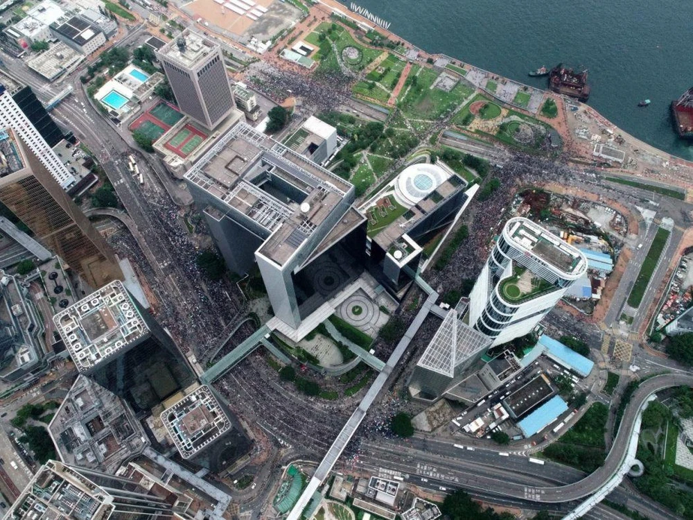 Ảnh từ trên cao ghi lại cảnh hơn 1 triệu người đổ ra các tuyến đường để biểu tình ở Hong Kong. Ảnh: Apple Daily