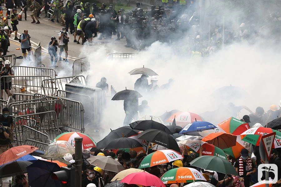 Cảnh sát Hong Kong dùng hơi cay, đạn cao su nhằm vào người biểu bình. Ảnh: Apple Daily