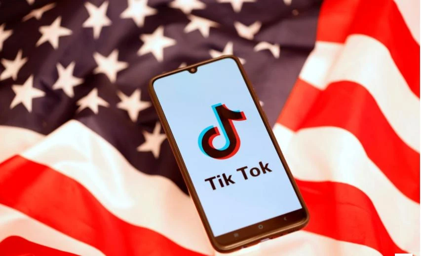 Điện thoại có logo của TikTok đặt trên Lá cờ Mỹ. Ảnh:REUTERS/Dado Ruvic