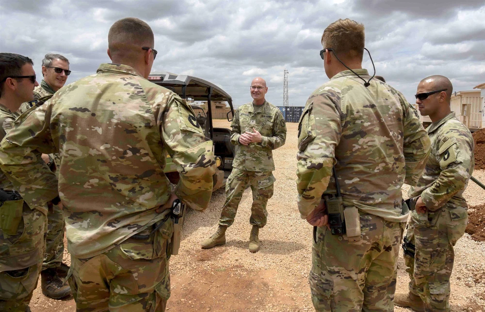 Một nhóm binh lính thuộc lực lượng đặc nhiệm hỗn hợp của Mỹ ở khu vực Sừng châu Phi đóng tại Somalia. Ảnh: AP