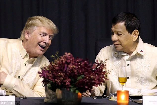 Ông Trump trò chuyện với ông Duterte. Ảnh: Reuters