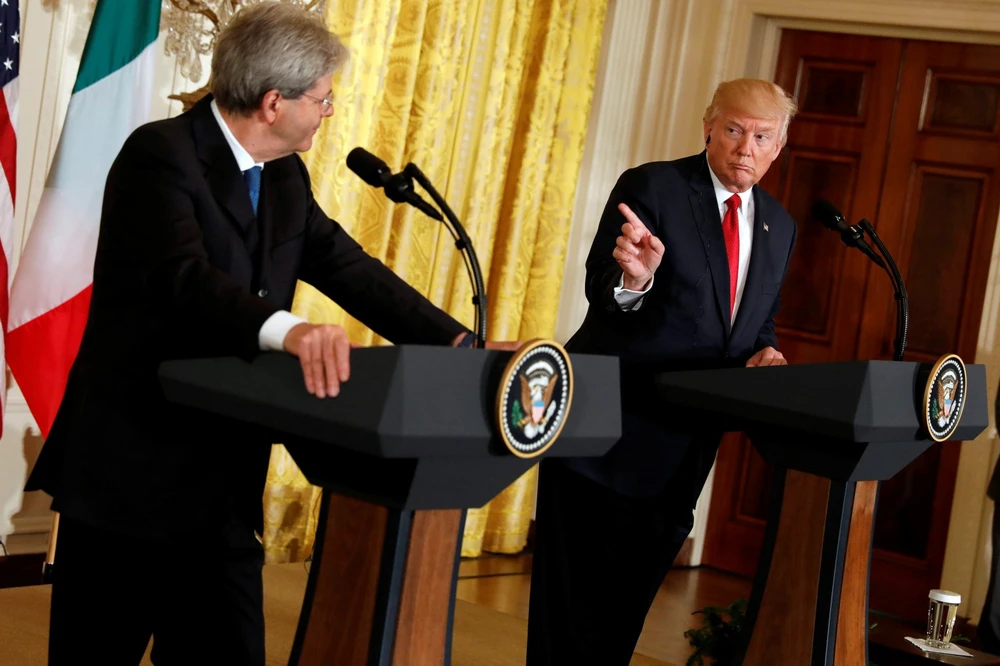 Tổng thống Mỹ Donald Trump và Thủ tướng Ý Paolo Gentiloni trong họp báo ở Nhà Trắng ngày 20-4. Ảnh: REUTERS