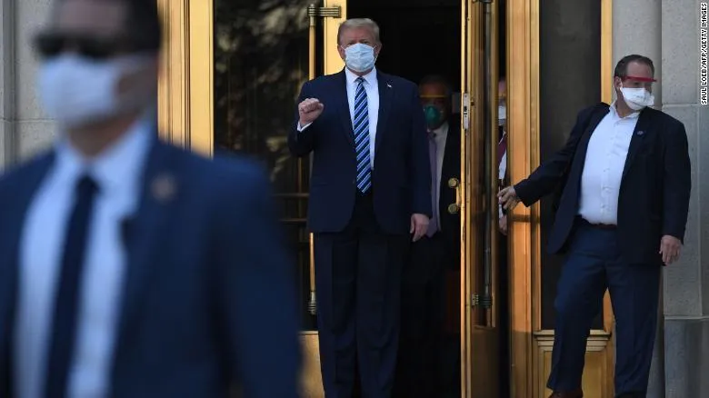 Khi ông Trump trở về từ bệnh viện, ông ấy đã tránh khu vực hai cánh Đông và Tây và chỉ đi thẳng vào Phòng Bầu dục từ bên ngoài. Ông Meadows và cố vấn truyền thông xã hội Dan Scavino đã mặc đồ bảo hộ và đi cùng tổng thống. Không rõ ông Trump có gặp ai khác trên đường đi hay không.