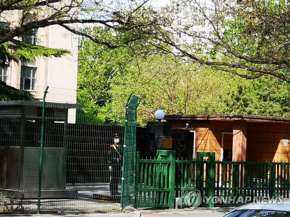Đại sứ quán Triều Tiên tại Bắc Kinh (Trung Quốc) ngày 21-4 vẫn không có động thái gì bất thường, Yonhap cho biết. Ảnh: YONHAP
