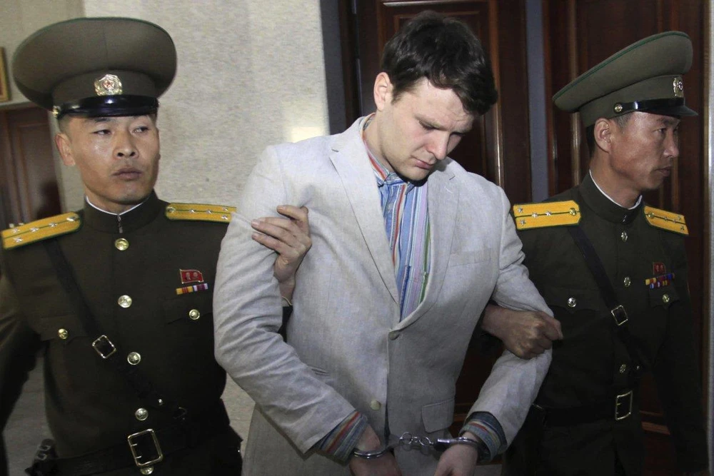 Sinh viên Warmbier bị Triều Tiên bắt hồi tháng 1-2016 khi đang ra sân bay về Mỹ sau kỳ du lịch Triều Tiên, với cáo buộc cố gắng đánh cắp một áp phích tuyên truyền của chính phủ Triều Tiên tại khách sạn ở Bình Nhưỡng, bị tuyên án 15 năm tù.