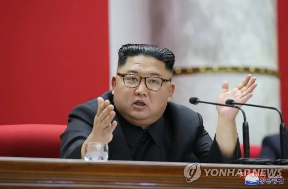 Lãnh đạo Triều Tiên Kim Jong-un tại Hội nghị Đảng Lao động Triều Tiên trước khi có bài phát biểu mừng năm mới hôm 31-12-2019. Ảnh: YONHAP NEWS