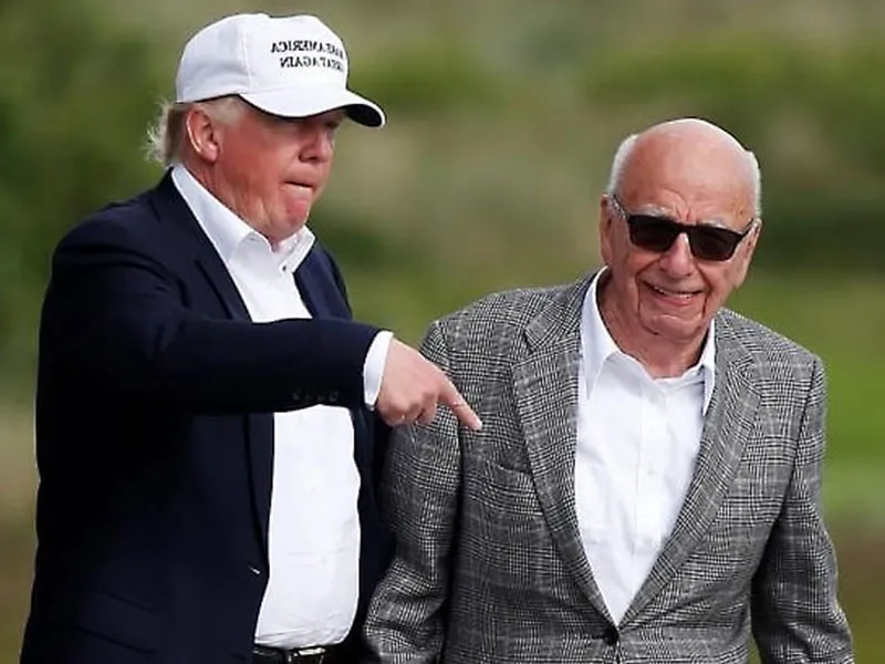 Ông Donald Trump (trái) và ông Rupert Murdoch (phải) trong một lần đánh golf chung ở sân golf nhà ông Trump ở Aberdeen (Scotland) tháng 6-2016. Ảnh: PATHEOS