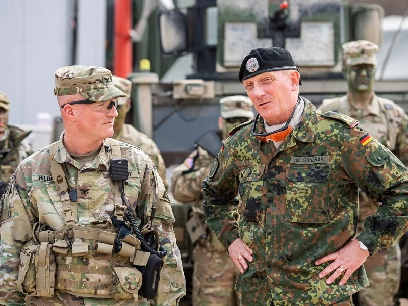 Đại diện quân đội Mỹ và Đức tại cuộc tập trận quốc tế Alllied Spirit X tại Đức hồi tháng 4-2019. Ảnh: DEFENSE NEWS