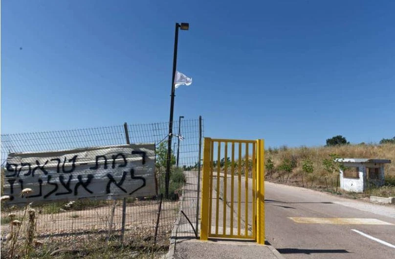 Một khu vực có rào chắn trên Cao nguyên Golan, tuy nhiên một dòng chữ bằng tiếng Hebrew rằng: "Trump Height không phải là đây". Ảnh: AFP