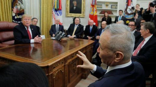 Tổng thống Mỹ Donald Trump (trái) và Phó Thủ tướng Trung Quốc Lưu Hạc tại phòng Bầu Dục ngày 31-1. Ảnh: REUTERS
