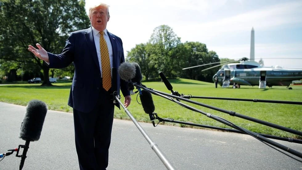 Tổng thống Mỹ Donald Trump ngày 22-6 trả lời phỏng vấn tại Nhà Trắng khi chuẩn bị lên máy bay rời Washington tới khu nghỉ dưỡng Trại David. Ảnh: REUTERS