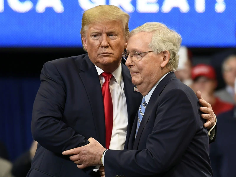 Tổng thống Donald Trump (trái) có mặt tại buổi vận động tranh cử của thượng nghị sĩ Mitch McConnell (phải) ở bang Kentucky hồi tháng 11-2019. Ảnh: REUTERS