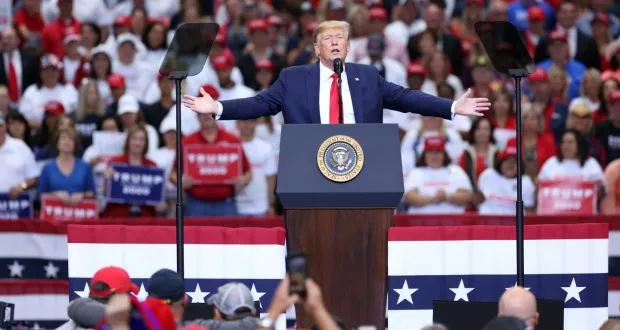 Tổng thống Mỹ Donald Trump phát biểu tại một cuộc mít tinh ở TP Dallas, bang Texas tháng 10-2019. Ảnh: Dylan Hollingsworth/Bloomberg