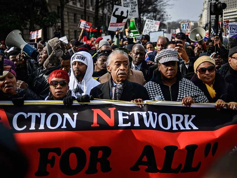 Cuộc tuần hành ngày 14-1 tại Washington quy tụ vài ngàn người do mục sư Al Sharpton dẫn đầu, sau đó kết thúc tại tượng đài Martin Luther King.