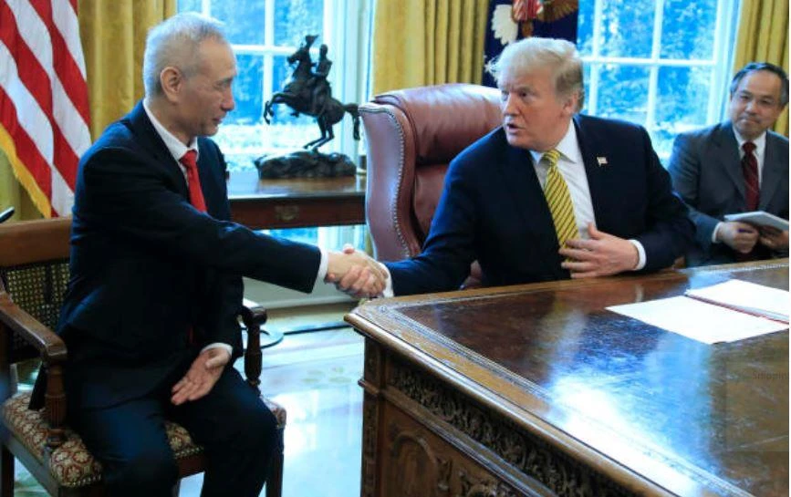 Tổng thống Trump gặp gỡ Phó Thủ tướng Trung Quốc Lưu Hạ (bìa trái) hồi đầu tháng 4-2019. Ảnh: AP