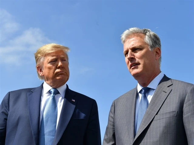Tổng thống Mỹ Donald Trump (trái) và Cố vấn An ninh quốc gia Mỹ Robert O'Brien (phải). Ảnh: REUTERS