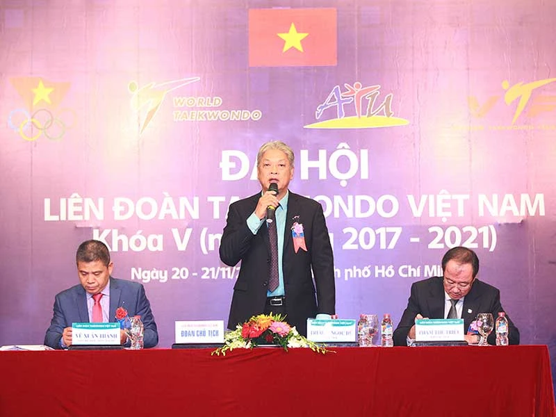 Ông Trương Ngọc Để (giữa), Ủy viên Ban Chấp hành Ủy ban Olympic Việt Nam, tiếp tục giữ chức chủ tịch Liên đoàn Taekwondo Việt Nam.