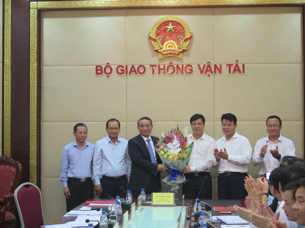 Các thứ trưởng Bộ GTVT tặng hoa cho ông Trương Quang Nghĩa. Ảnh: H.LÂM