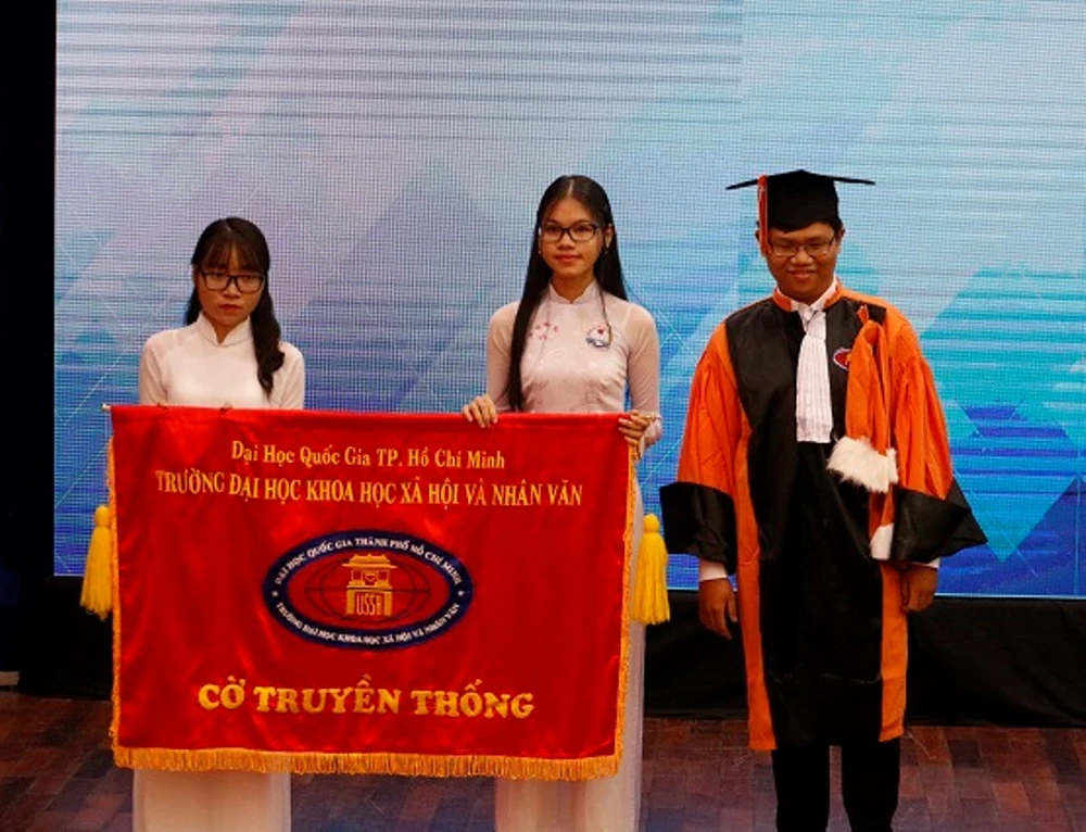 Trường ĐH KHXH&NV nhận cờ truyền thống.
