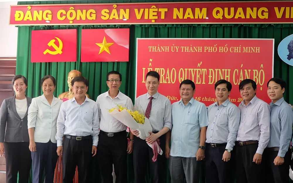 Chiều 16-9, ông Huỳnh Cách Mạng, Phó Trưởng Ban Thường trực Ban Tổ chức Thành ủy TP.HCM đã trao quyết định cán bộ tại Quận ủy quận Thủ Đức.