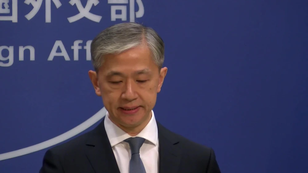Người phát ngôn Bộ Ngoại giao Trung Quốc Uông Văn Bân trong cuộc họp báo ngày 16-9. Ảnh: RUPTLY