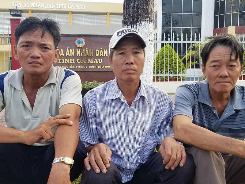 Ông Dữ (giữa) và hai nhân chứng vụ kiện tranh chấp vé số độc đắc. Ảnh: TRẦN VŨ
