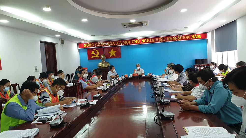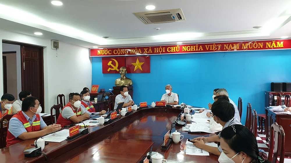 Buổi làm việc có sự tham gia của lãnh đạo UBND quận 11, lãnh đạo 16 UBND phường, đại diện Sở Y tế. Ảnh NT