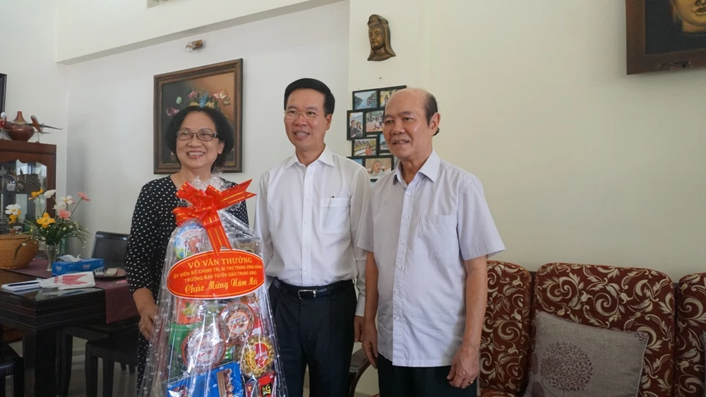 Cùng ngày, Trưởng ban Tuyên giáo Trung ương cũng đến thăm và chúc tết gia đình GS-TSKH ngành văn học Lê Ngọc Trà.