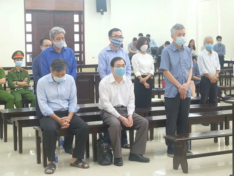 Bị cáo Vũ Huy Hoàng cùng các đồng phạm tại tòa. Ảnh: ANH NAM