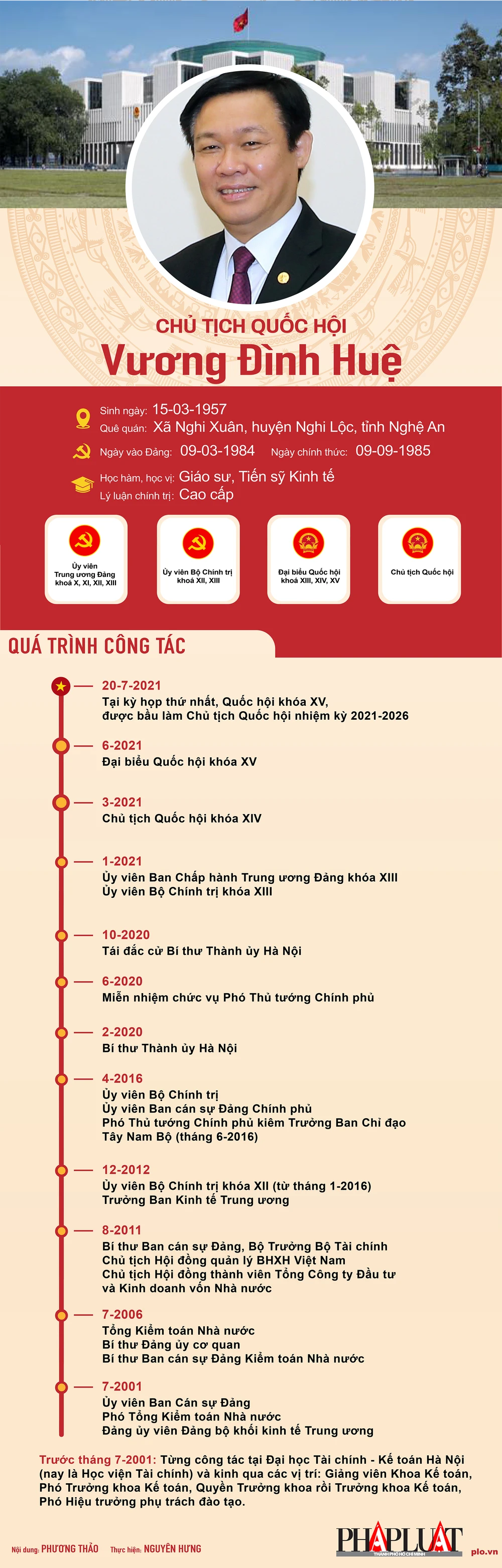 Tóm tắt quá trình công tác của Chủ tịch Quốc hội Vương Đình Huệ.