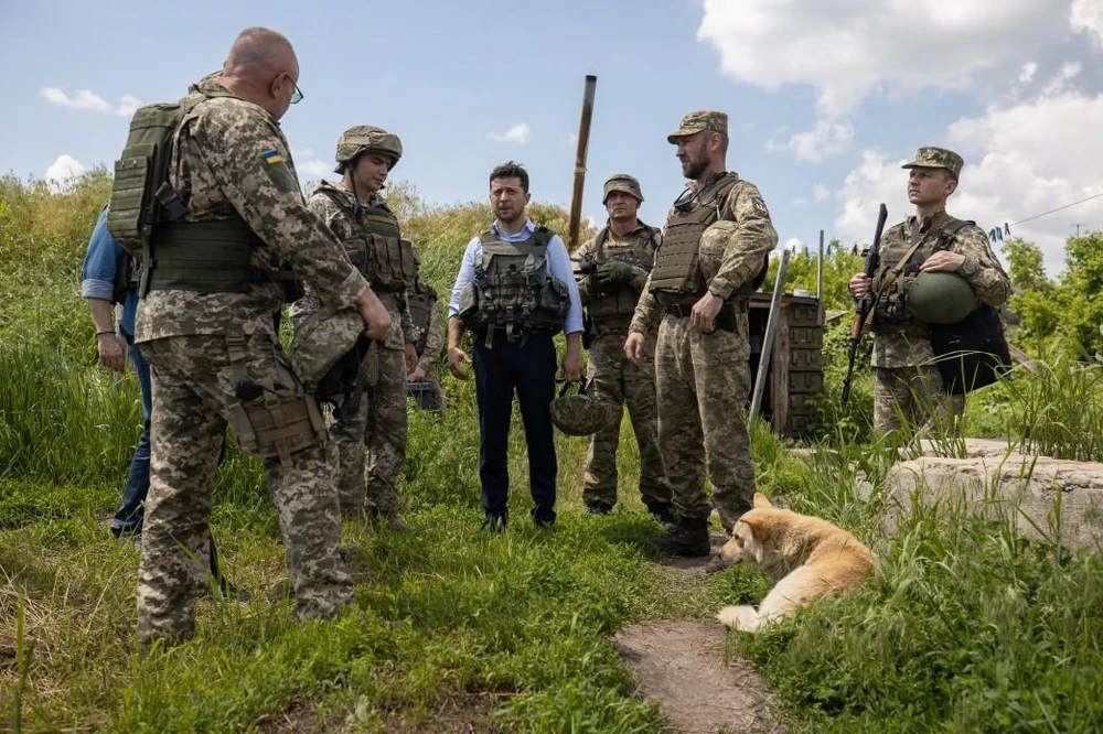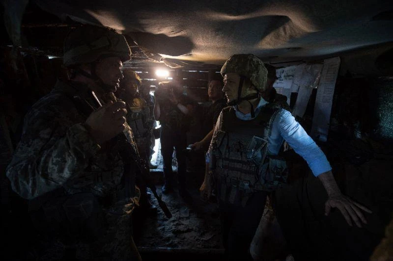 “Các địa điểm nằm sát nhất với lực lượng nổi dậy chỉ cách 400 m”, thông báo cho hay. Trong các bức ảnh do Văn phòng tổng thống Ukraine đăng tải, ông Zelenskiy được nhìn thấy đội mũ bảo hiểm quân đội và mặc áo chống đạn. Ảnh: Văn phòng Tổng thống Ukraine