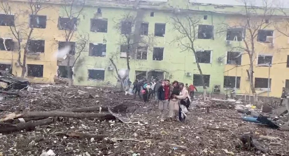 Bộ Ngoại giao Ukraine sau đó đã đăng tải một đoạn video cho thấy một nơi có vẻ là bệnh viện đã bị hư hại nặng với dòng tiêu đề: "Hôm nay, Nga đã nã pháo vào một bệnh viện nhi và một bệnh viện phụ sản ở Mariupol”.