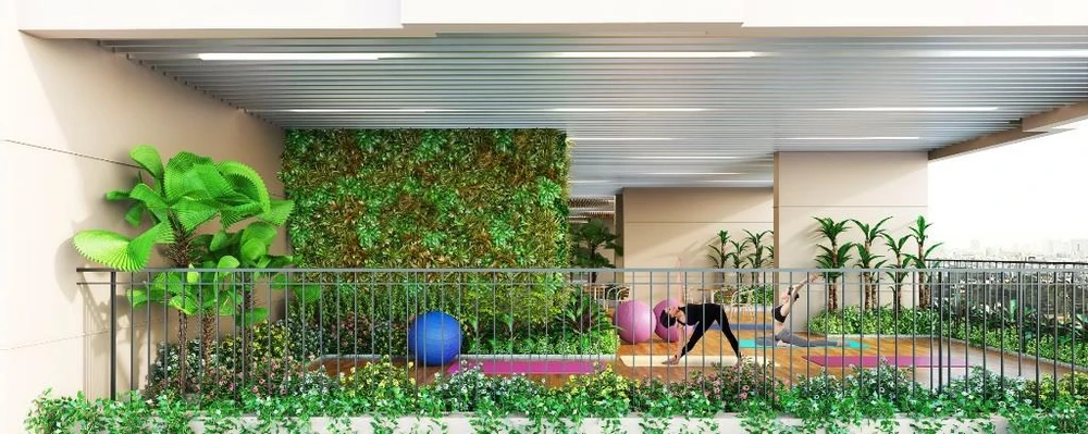 Không gian tập yoga trên cao tràn ngập những mảng xanh với không khí trong lành