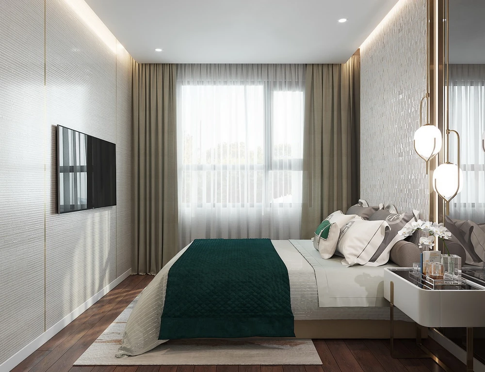 Phòng ngủ đón ánh sáng tự nhiên tràn qua cửa sổ. Ảnh: DXG