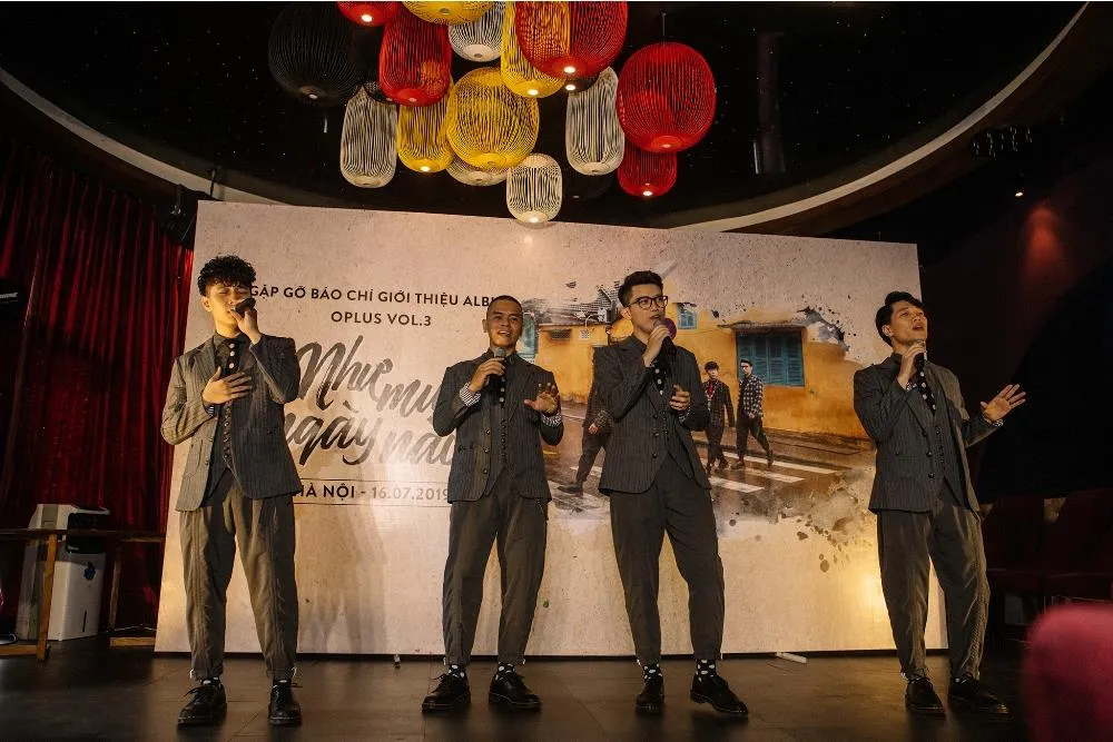 Oplus thể hiện một số ca khúc trong 'Như mưa ngày nào" tại buổi ra mắt.