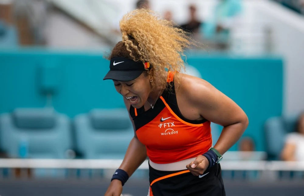 Naomi Osaka ăn mừng trận thắng vòng 2 Miami Open. ẢNH: GETTY